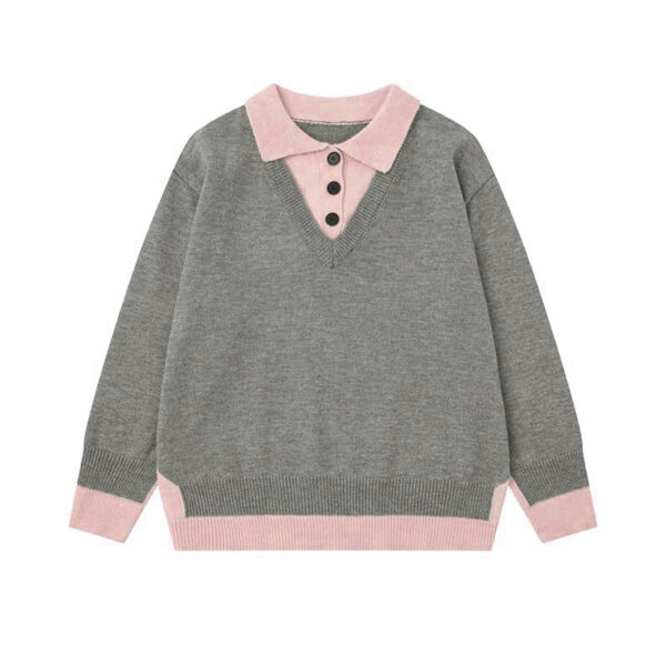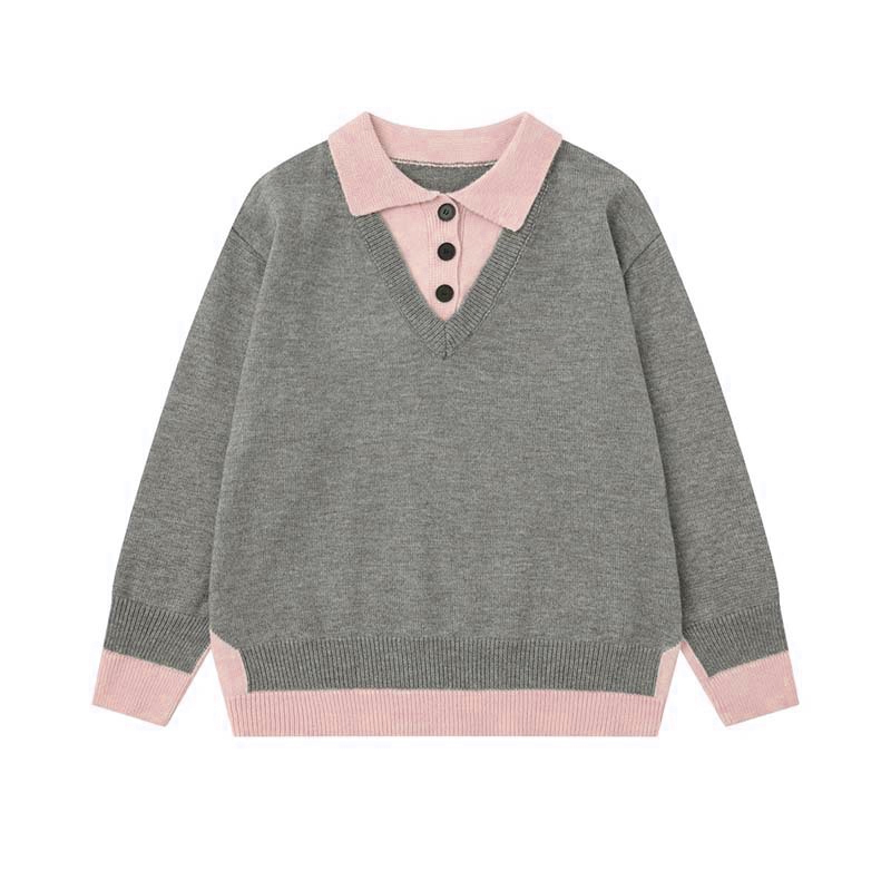 Contrast Color Fake Two-Piece Polo Neck Sweater